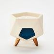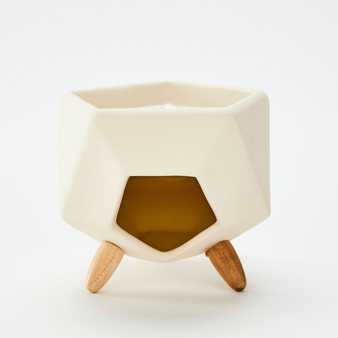 Ce diffuseur de parfum de forme octogonale amène un côté Fun à la pièce dans laquelle il est placée. Réalisé en céramique, l'extérieur est beige, l'intérieur bleu ou jaune. Les pieds sont en bois naturel.