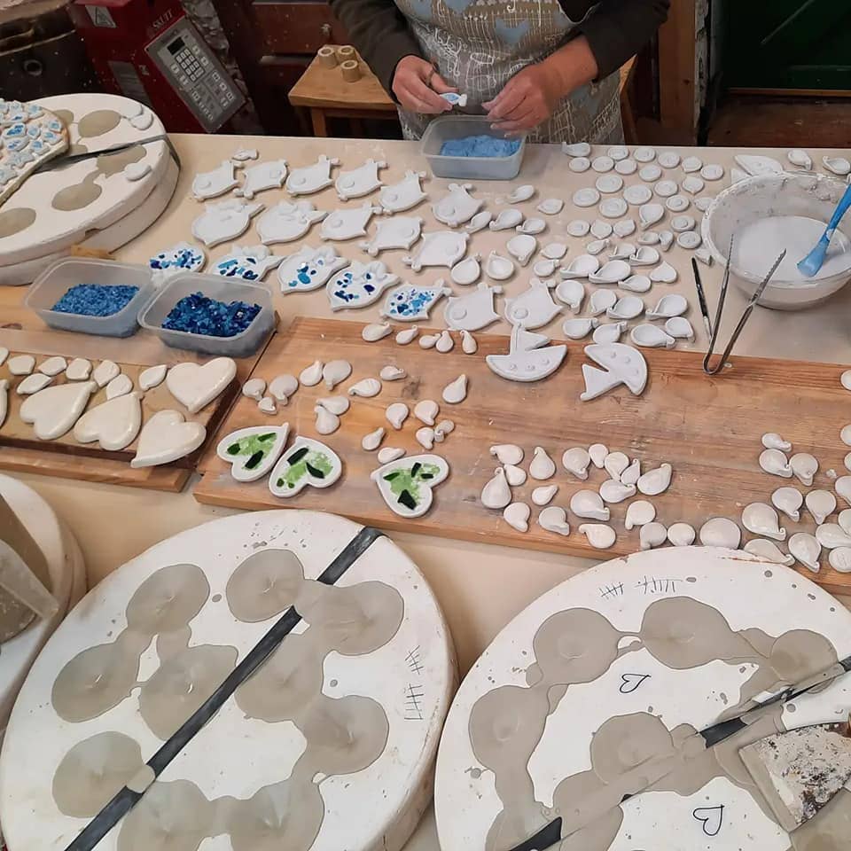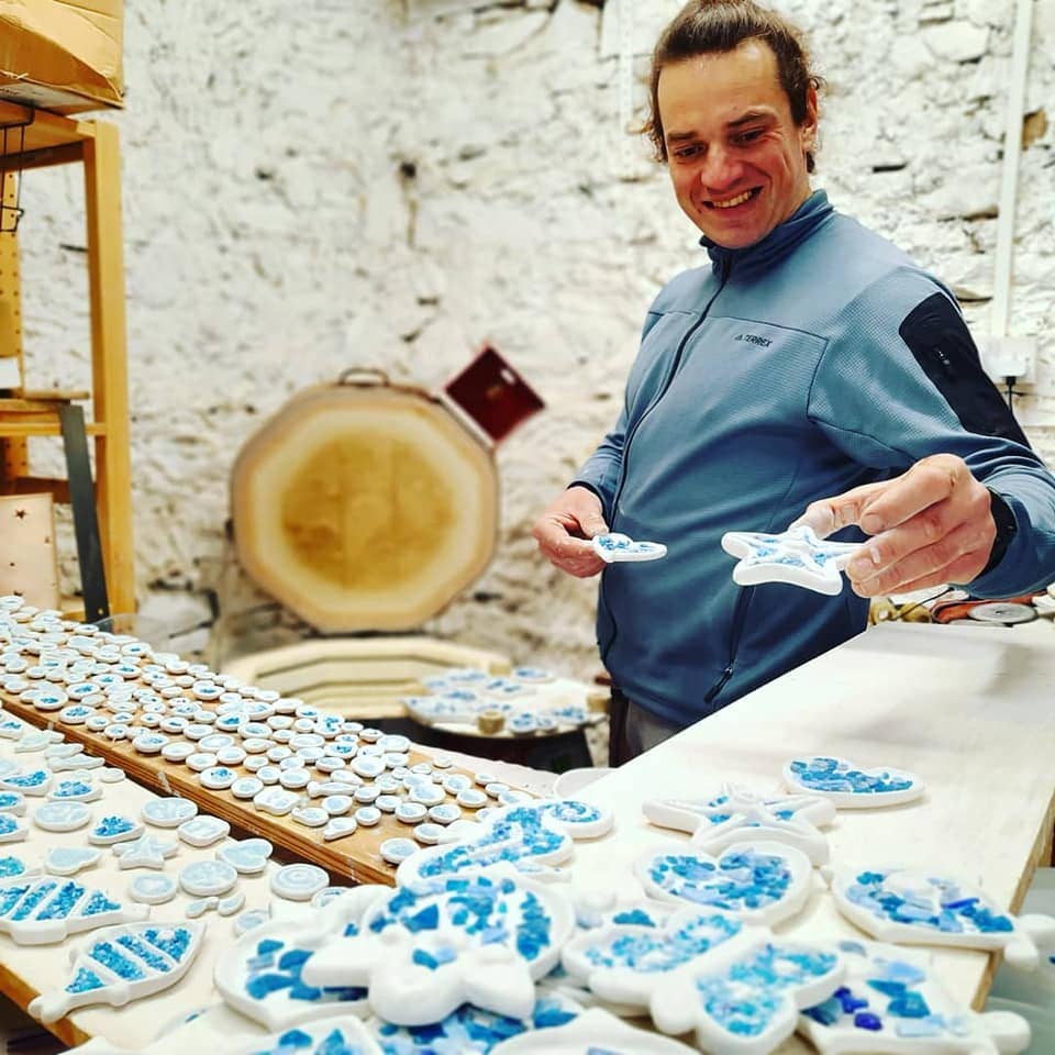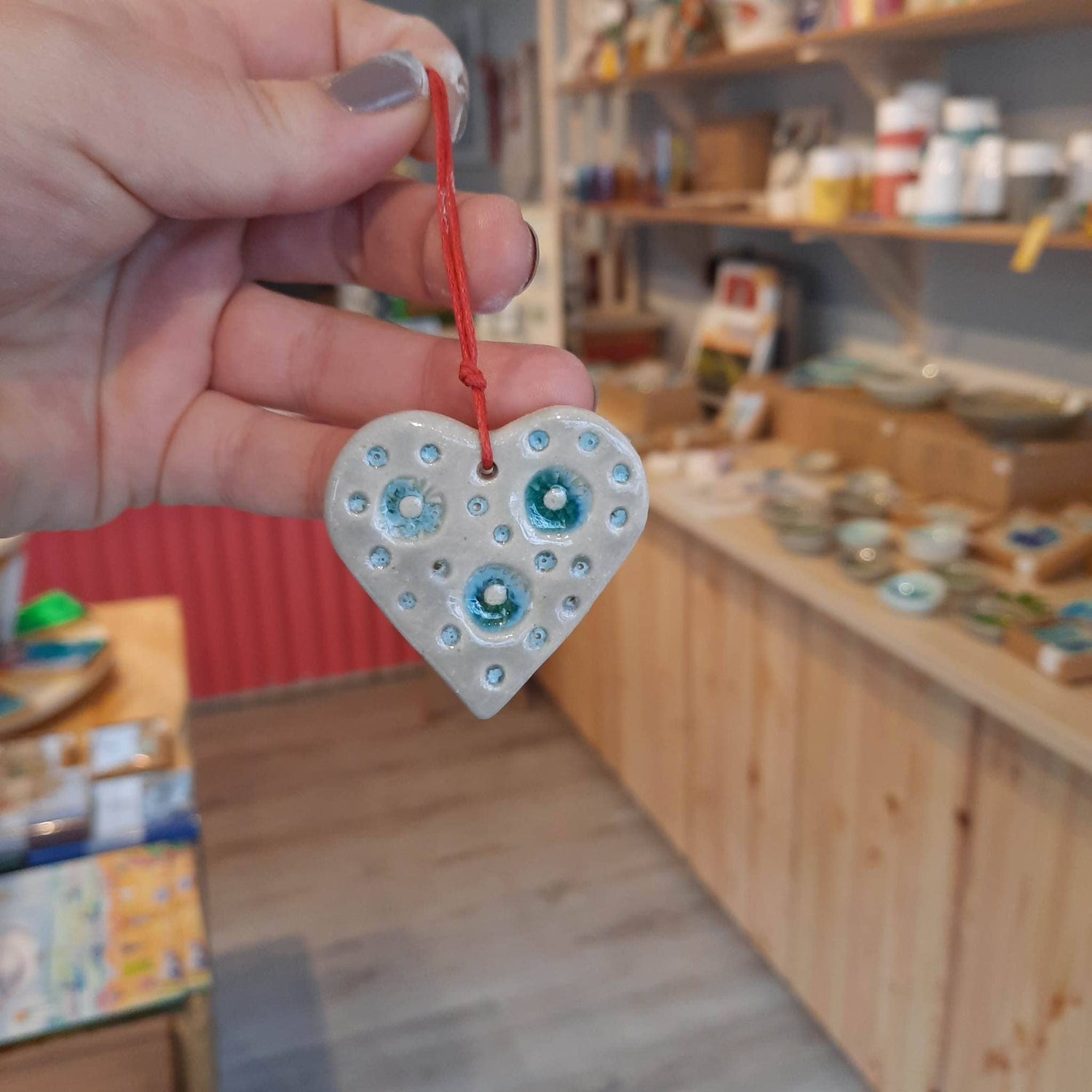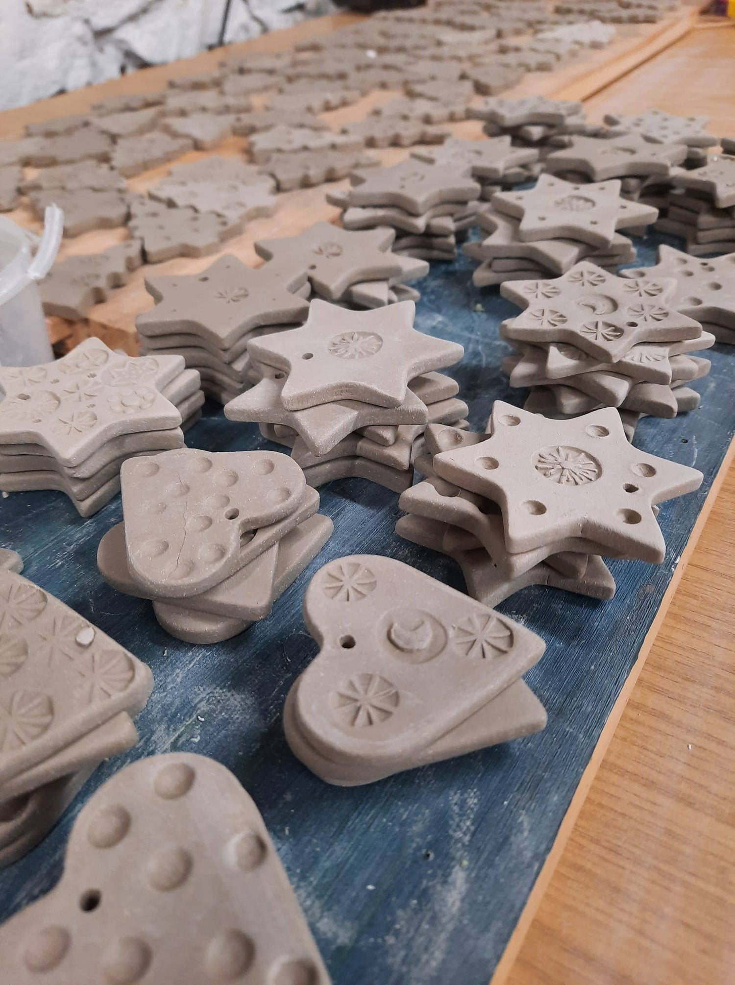 Ajoutez une touche de charme artisanal à votre décoration de Noël avec notre ensemble de 3 décorations en terre cuite assorties. Chaque pièce est légèrement différente, ce qui les rend uniques. Les palettes de couleurs comprennent le blanc, le gris, le vert et le bleu, avec une ficelle en coton ciré attachée pour une accroche facile.