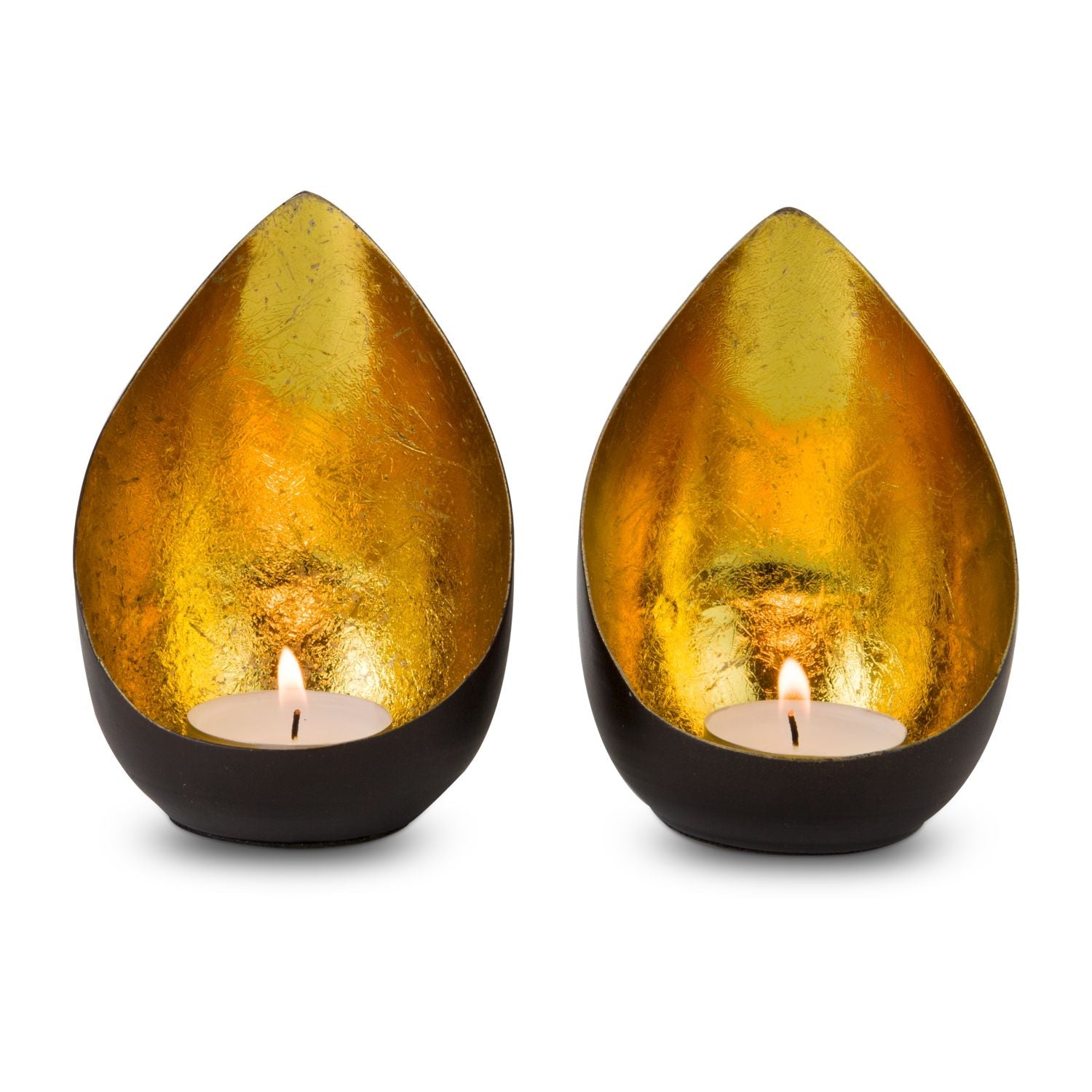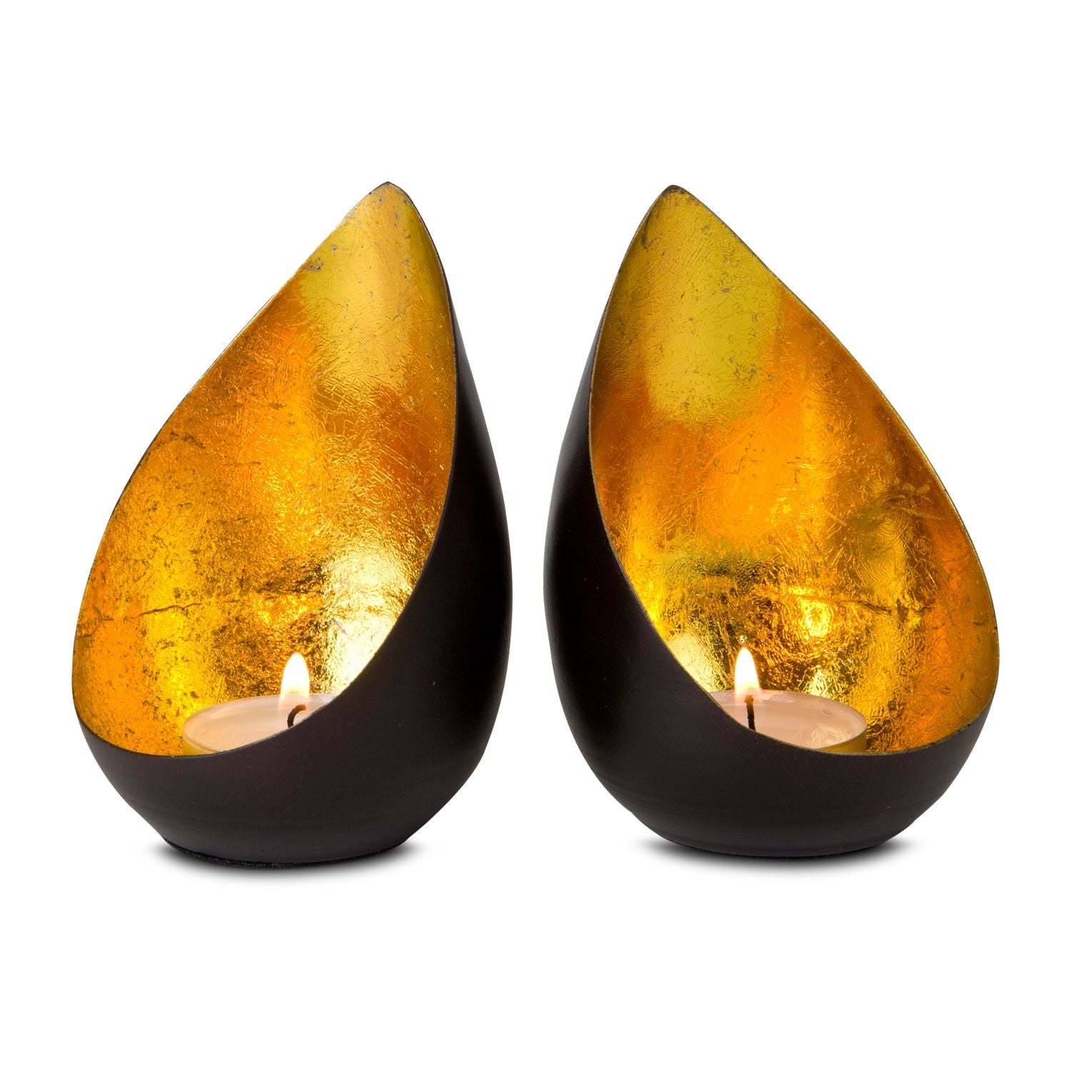 Deux magnifiques photophores décoratifs formant un ensemble harmonieux, des effets de lumière dorée pour une pure détente. Le travail manuel provoque de légères différences de forme. Également disponible dans d'autres modèles.